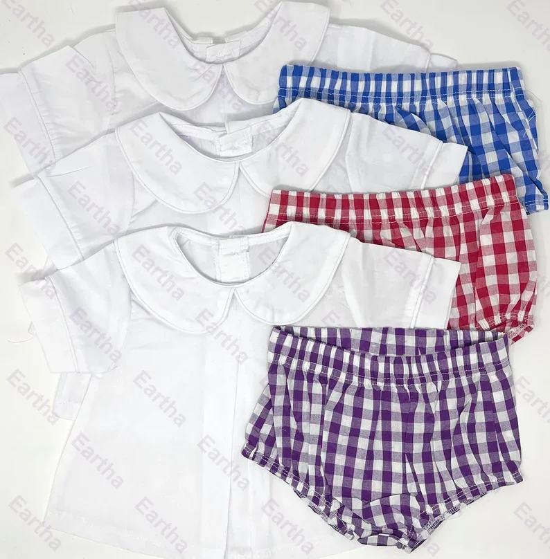 Хлопковый топ с короткими рукавами на заказ Детский комплект из двух предметов шортами Роскошная детская одежда воротником Питер Пэн