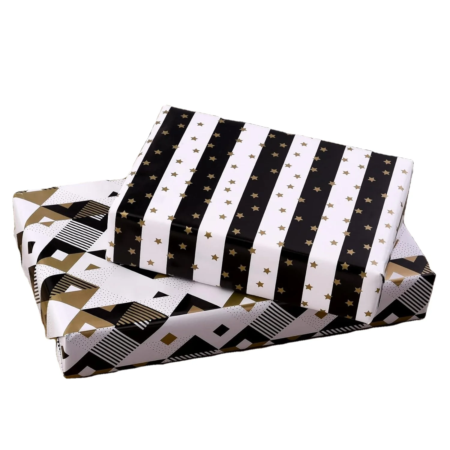 Индивидуальная печать сложенная черно-белая и Золотая матовая полоска со звездами подарочная оберточная бумага для рождественской свадьбы