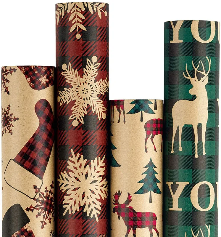 Красные и зеленые пледы, красивые рулоны, оберточная бумага, рождественские подарки, оберточная бумага, рулоны, оптовая продажа, Рождественская оберточная бумага