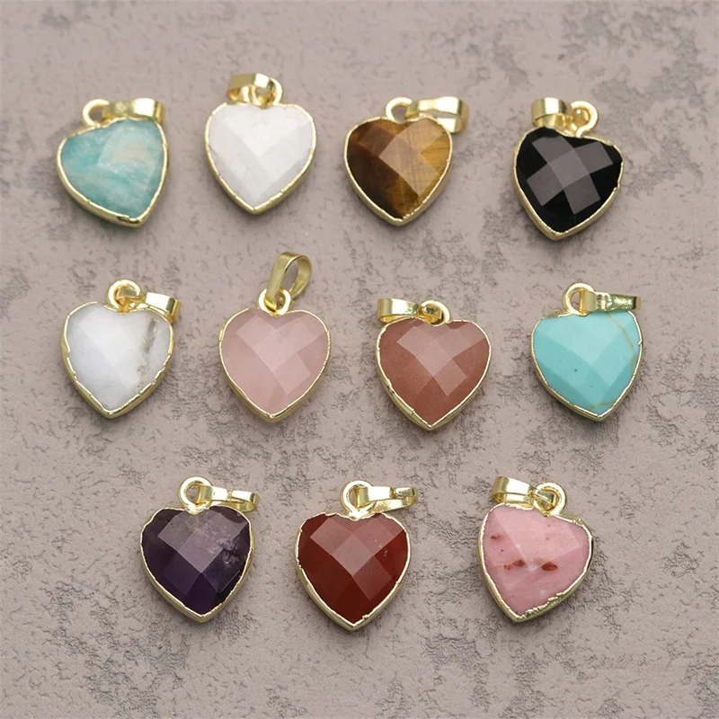 Модные ювелирные изделия подвеска из натурального черного агата тигрового глаза сердца ограненный кулон с настоящим золотым гальваническим покрытием драгоценного камня