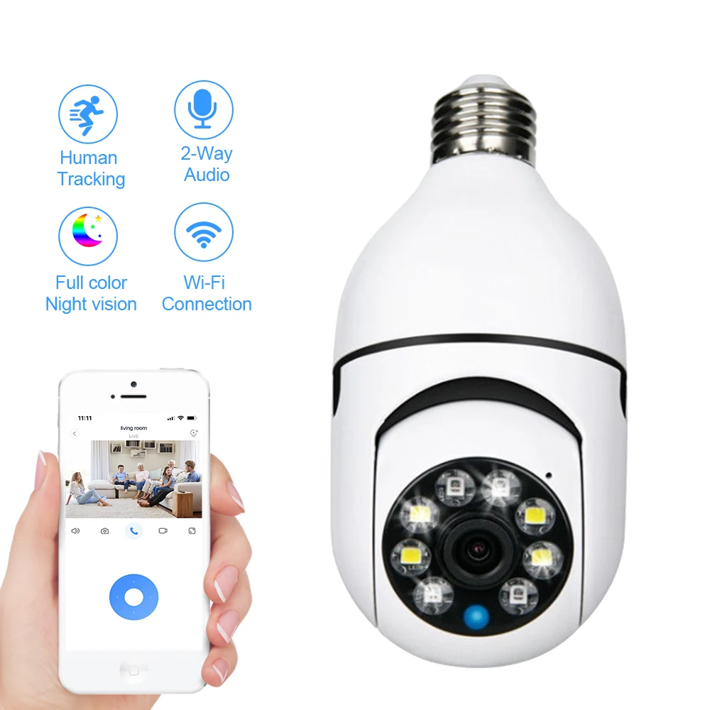 Лидер продаж OEM и ODM патрон для лампы E27 полноцветная умная камера видеонаблюдения HD 2MP 3MP 5MP WFI 4G