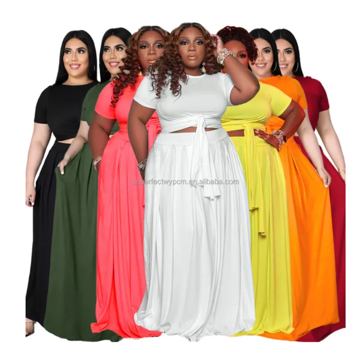 2021 5xl однотонный бандажный Топ для женщин и плиссированная юбка большого размера Женский комплект из двух предметов