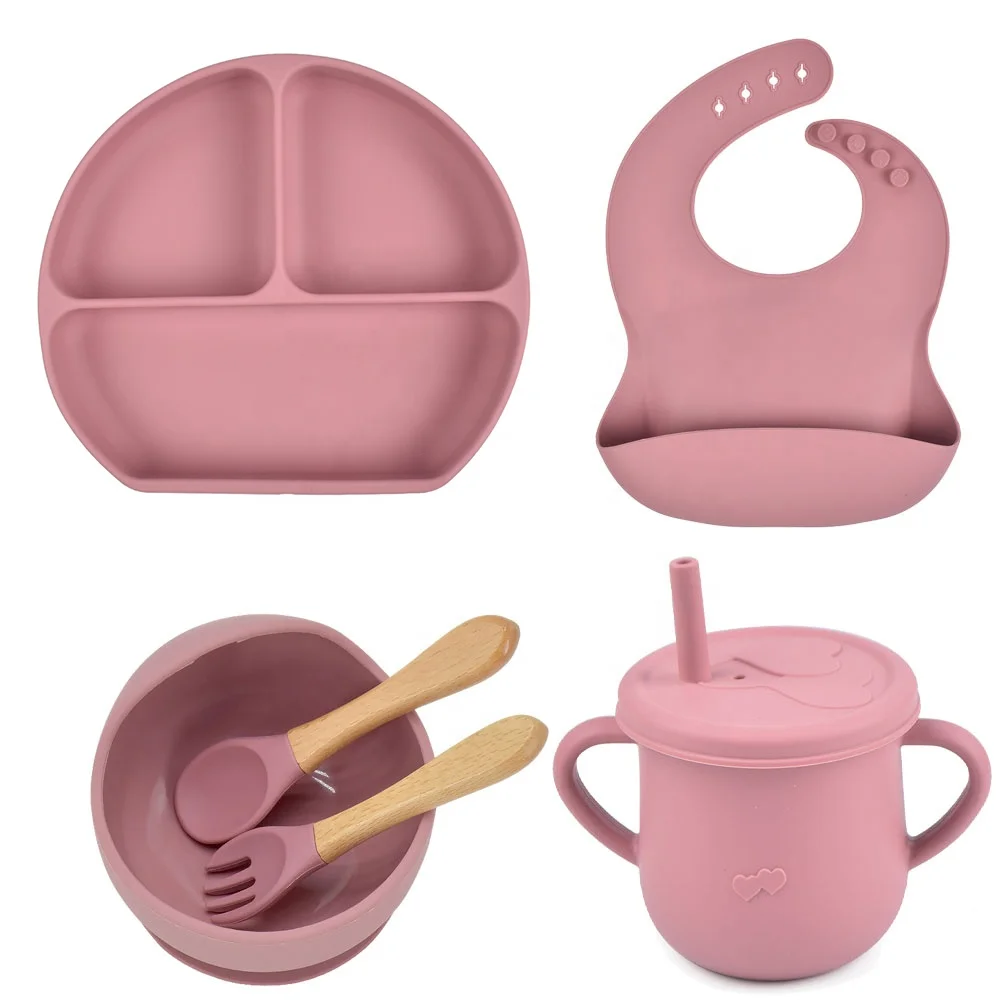 Таможня напечатала лазерный логотип 6 шт. силиконовых кейсов для детских бутылочек, набор для отлучения грудничка от груди, Комплект всасывания для тарелочной чаши нагрудник чашка Ложка Вилка