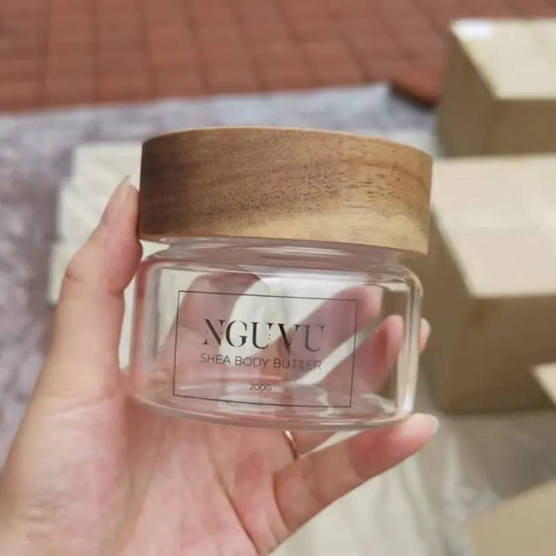 Бокал из боросиликатного стекла с деревянной крышкой акации для хранения соков и сливок пищевых напитков
