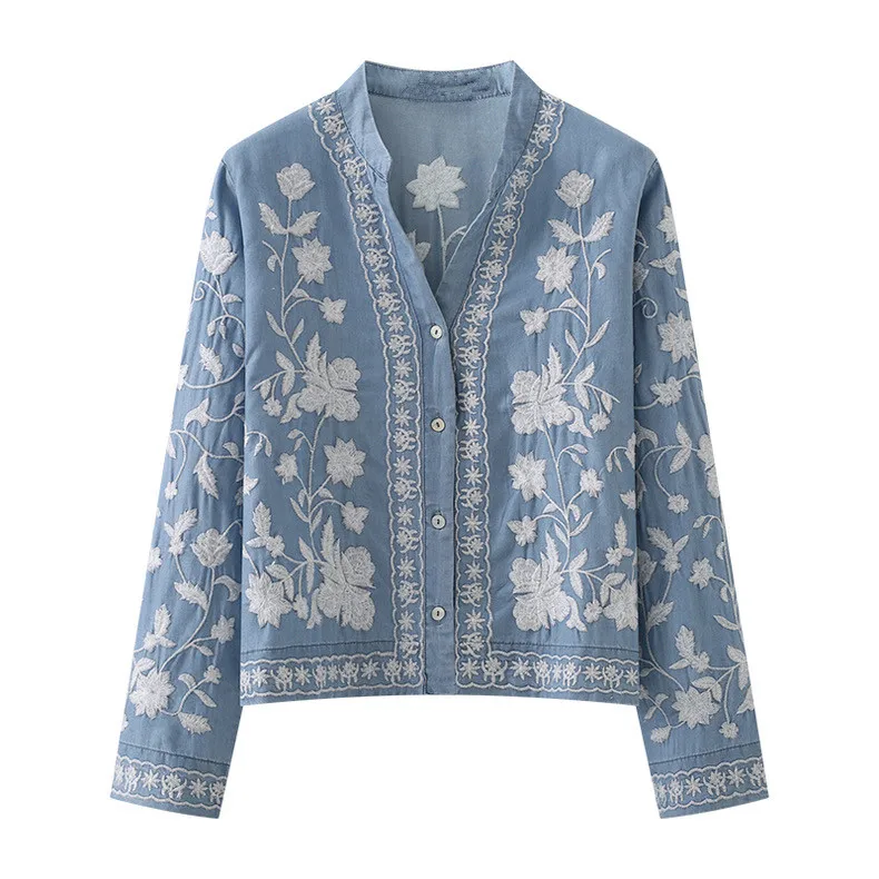 LW0374 французская рубашка женская новая 2025 тяжелая промышленность цветы с лацканами однобортный Топ Блузки Элегантные женские 830,44-1 333,38 ₽