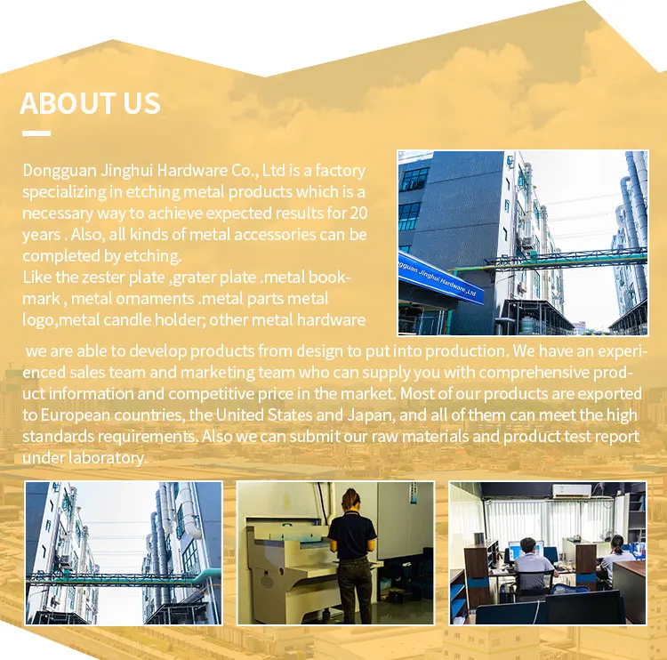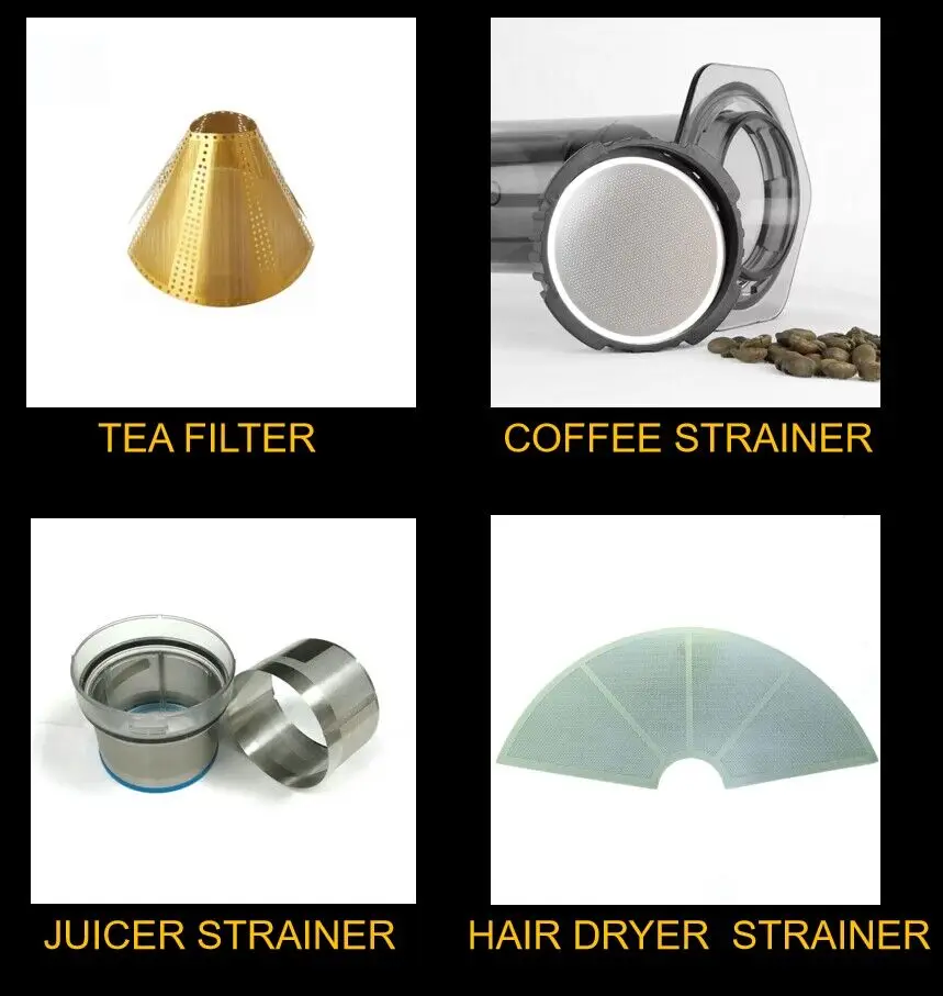 Application | Smoke detector mesh filter, oil, chemicals, food, pharmaceutical use sophisticated filters, filter plates, filter cartridges, filters;Electronic Industry Leakage metal plate, cover, flat pin, lead frame, metal substrate;Optical precision machinery and plane parts, parts of spring; Other create advertise board, trademarks and fine crafts.we can design and produce that you may have for precision equipment, electronics and other fields. | |