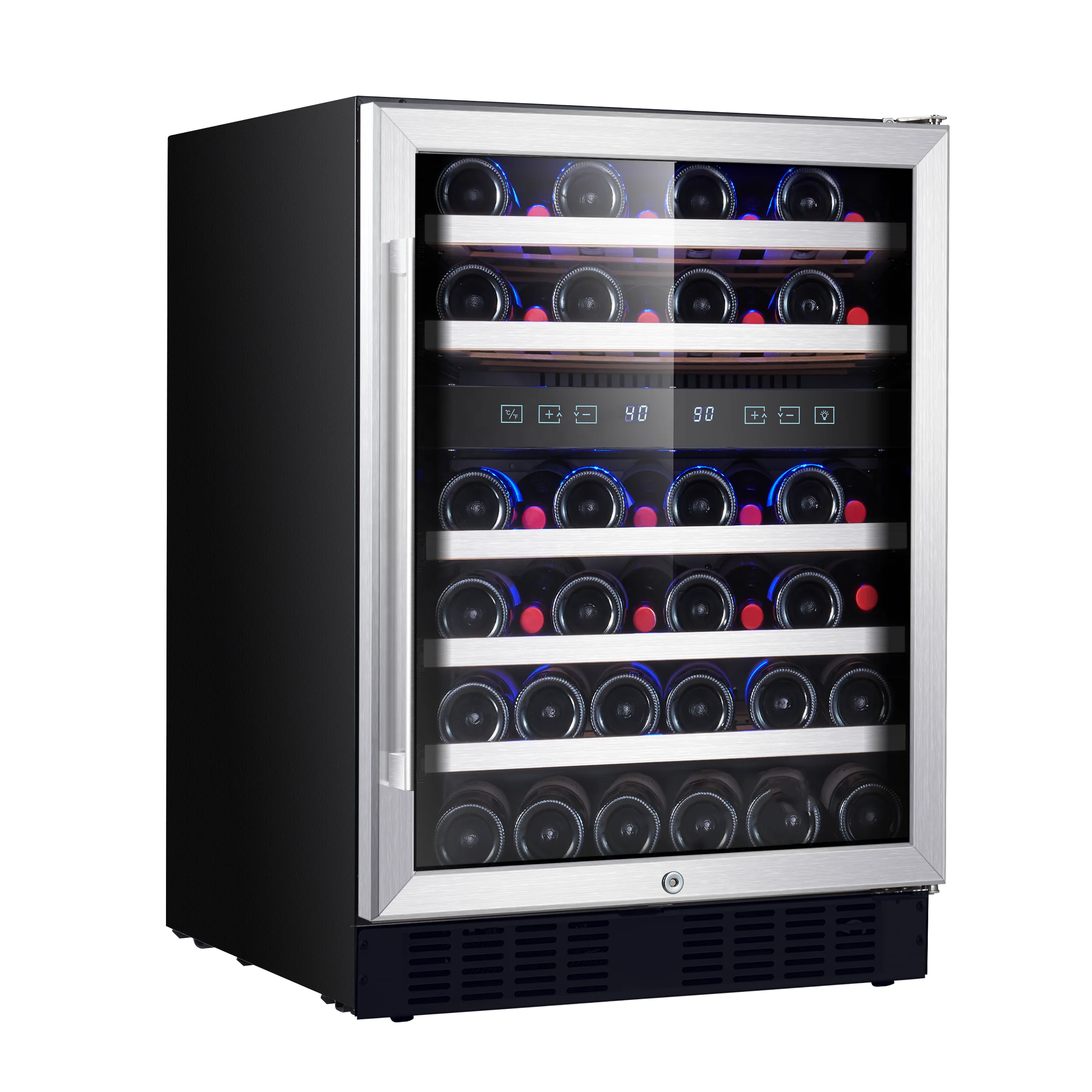 Temperature range: 5-20℃(41-68℉) for left wine zone, 2-10℃(36-50℉) for right zone | |