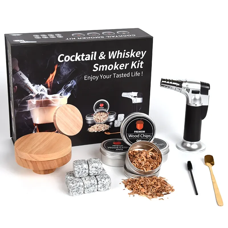 Хит продаж, посуда для напитков, набор для коктейлей и курильщиков с фонариком, портативный курильщик для виски, рождественские подарки, набор для коктейлей и коптильщиков