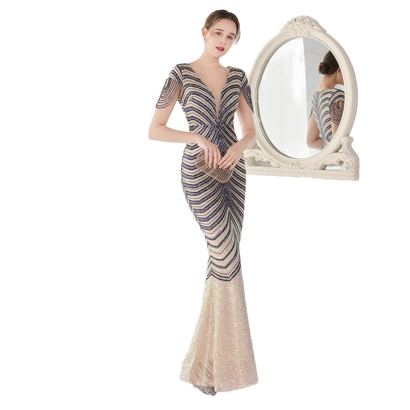 2024 Новое модное женское вечернее платье без рукавов с глубоким V-образным вырезом и блестками