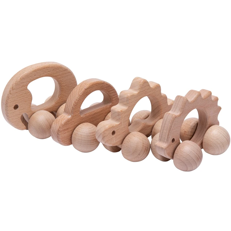 Деревянная тачка в форме животного из бука для малышей, Прорезыватель для зубов, игрушечный автомобиль