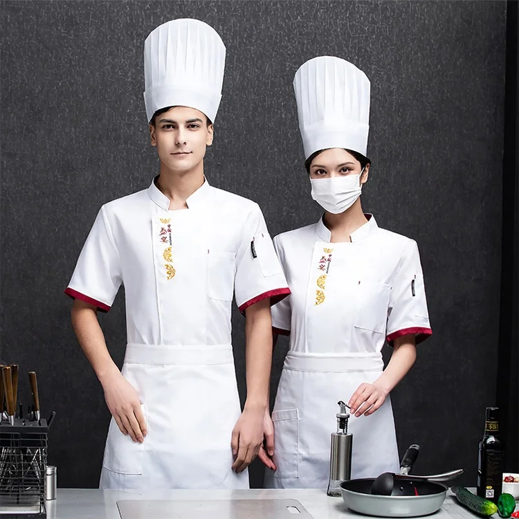 Полный комплект, белая куртка шеф-повара, с коротким рукавом, униформа для ресторана и бара, пальто