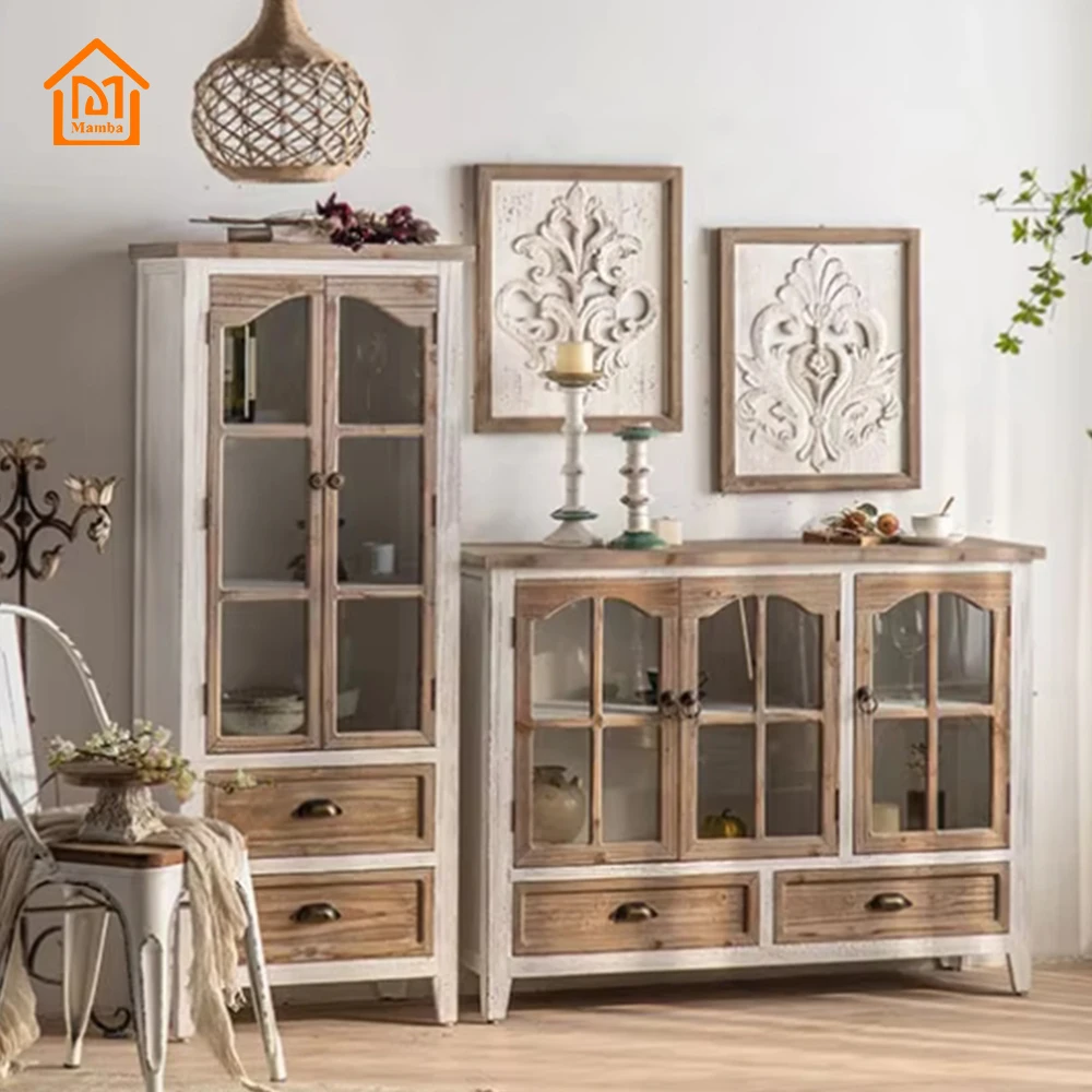 Натуральный шкаф для хранения деревенская деревянная мебель из ротанга буфет