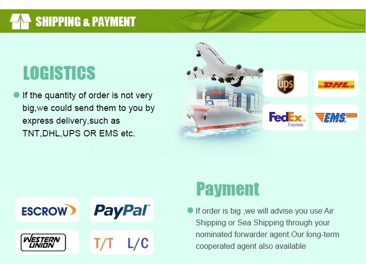 And in bulk order, we usually accept T/T( 30% in advance and 70% before shipment or 70% balance against the Bill of Lading.