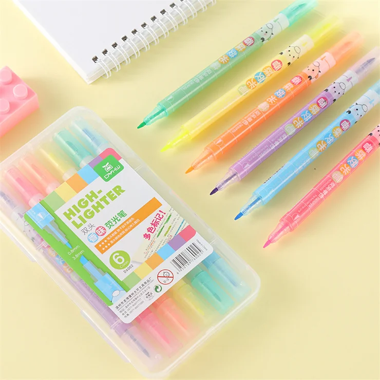 Низкая цена на заказ Высокое качество 2023 Новая мода искусство рисования канцелярские 6 видов цветов с двухголовой флуоресцентный Пастель маркер ручка