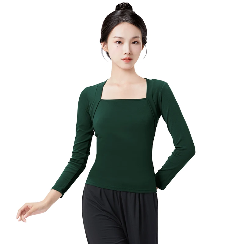 Женские дышащие балетные блузки с квадратным воротником