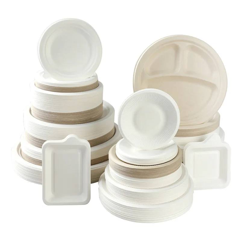 Одноразовые биоразлагаемые тарелки из сахарного тростника набор столовых приборов кукурузного крахмала компостируемые наборы посуды