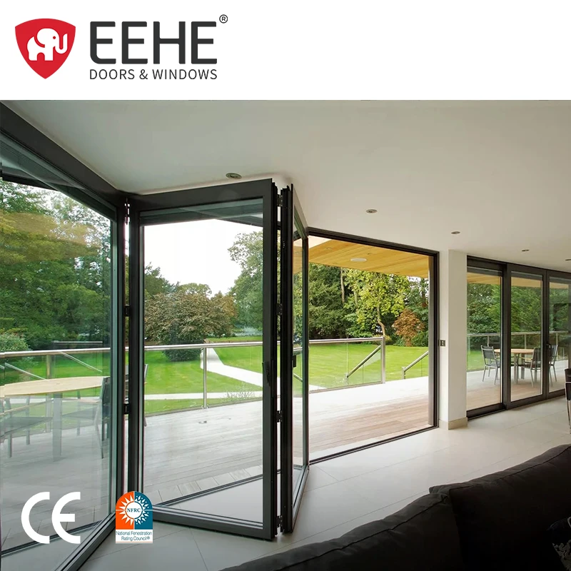 Доступная стандартная двойная закаленная стеклянная дверь двойного сложения для внутреннего дворика наружная алюминиевая Складная Дверь