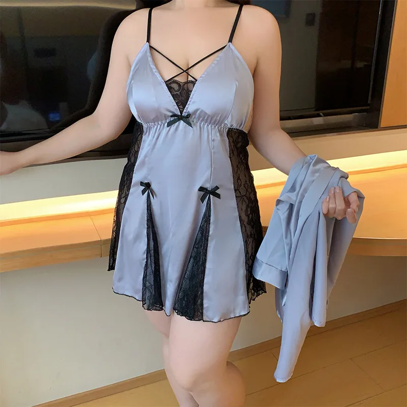 Сезон: весна-лето комплект из 2 предметов шелка с v-образной горловиной без застежки; Детское Белье для сна белым кружевным рукавом и длинный Атласный халат ювелирных изделий женщин