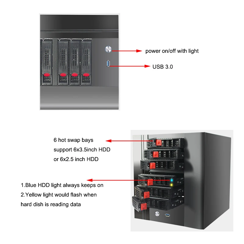 Panel Setting | One USB3.0; One Power Switch ; One Power Indicator; One HD Indicator |