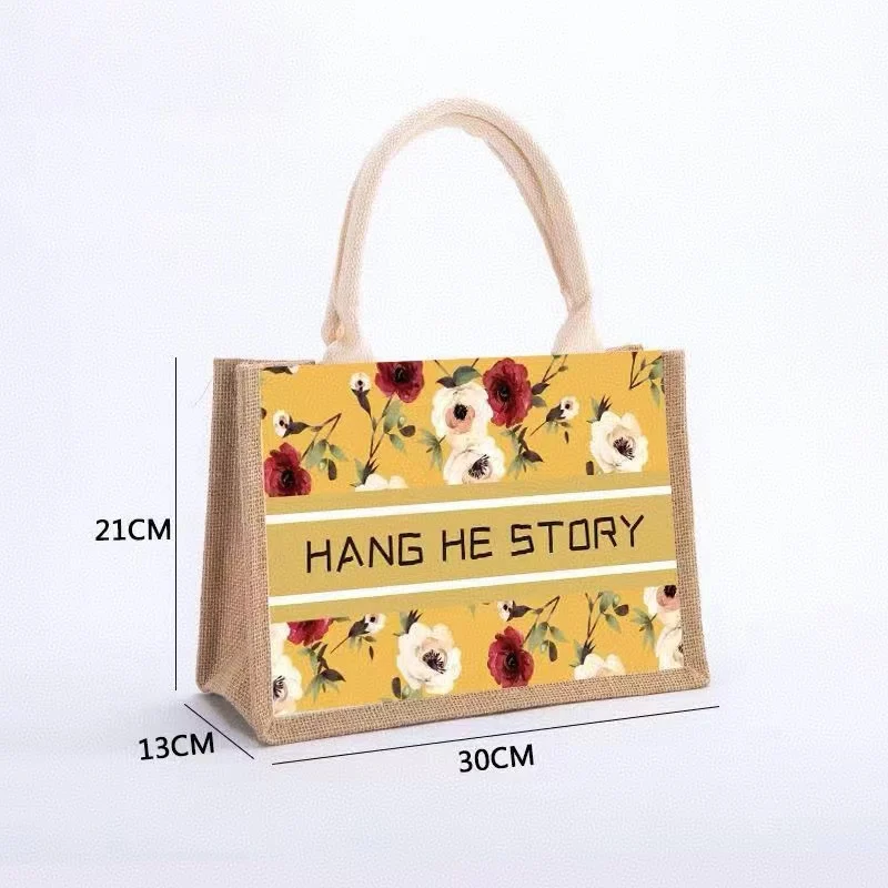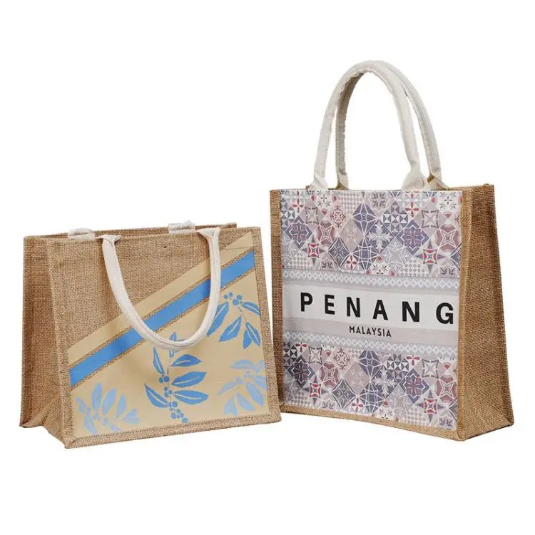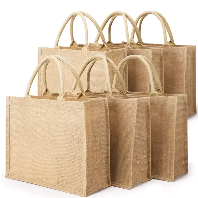 Оптовая продажа, индивидуальная печать логотипа, натуральная Экологичная Сумка-тоут из джута, переработанная складная сумка для покупок из джута