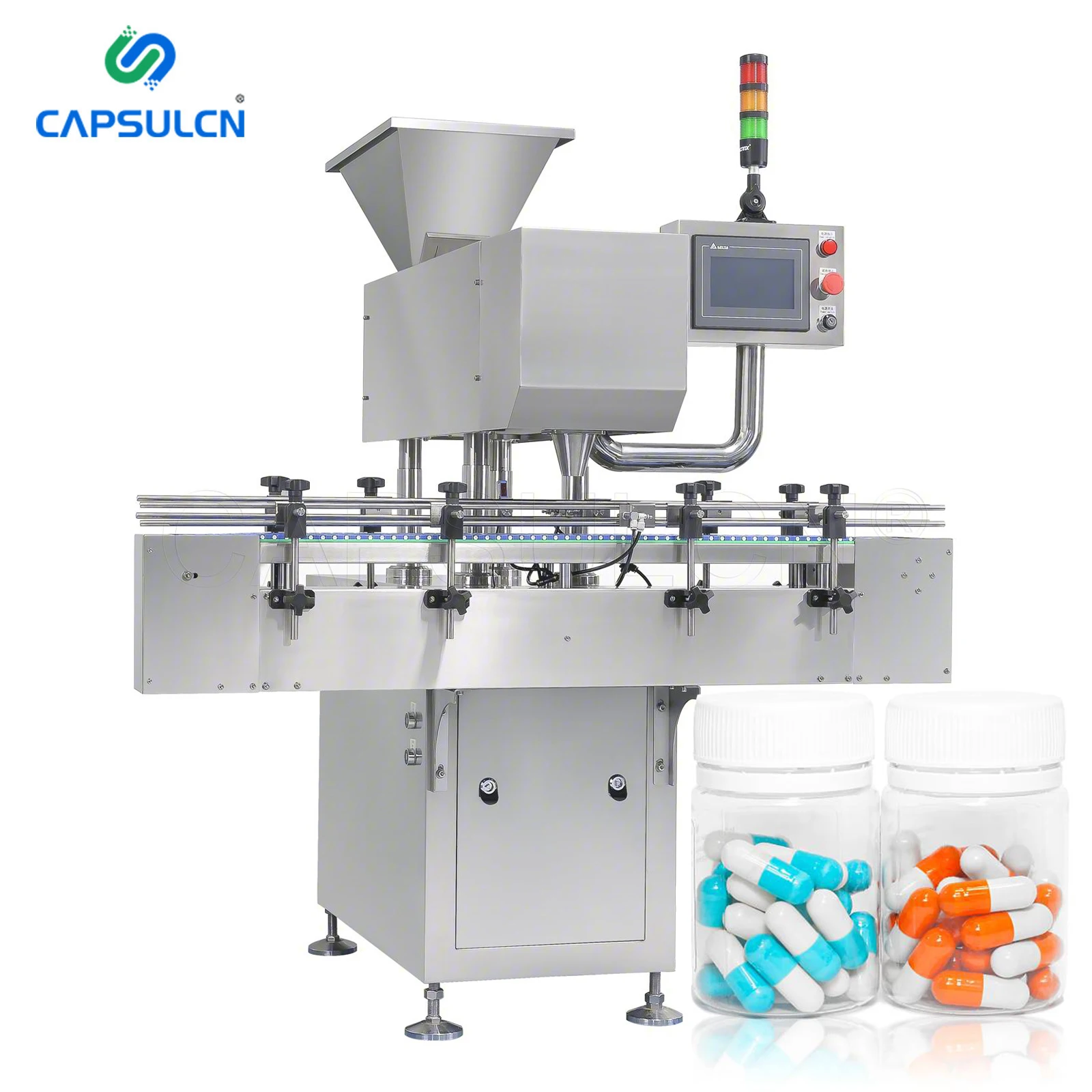 Model | Suitable sizes | Output | Filling heads | Plugging heads | Power | Net weight | Overall dimensions |