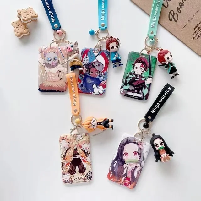 Набор милых мультяшных аниме идентификационных карт, значок-убийца демонов, защитный чехол для карт в автобусе, метро, держатель для карт для школьного кампуса, брелок для ключей