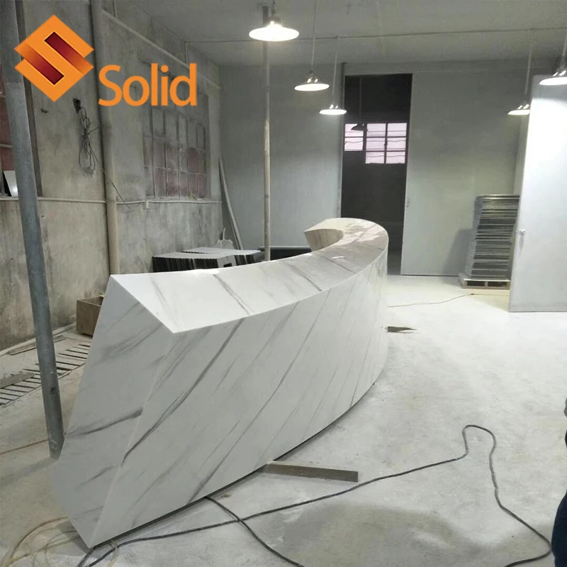 Офисная стойка из искусственного камня современный дизайн изогнутая регистрации чистый белый стол для консультаций индивидуальный заказ