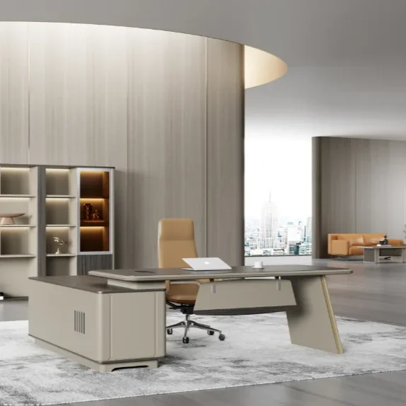 Простой современный большой офисный стол компьютерный и стул комбинация один босс стойки для работы