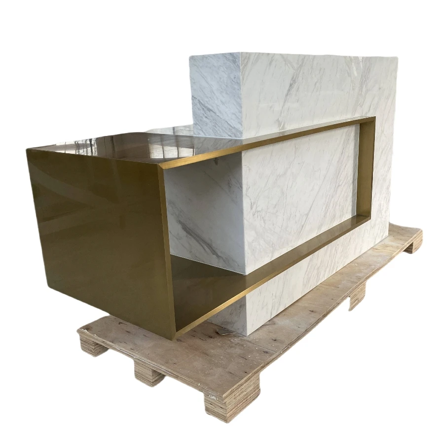 Стойка регистрации спа-центра из белого мрамора с отверстиями для электрического кабеля Золотая стойка нержавеющей стали