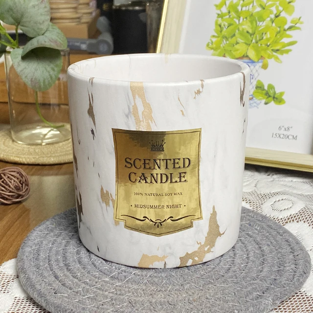 TC07 заводская цена роскошная керамическая банка с цементным узором ароматическая свеча наклейка ароматический воск для подарка и йоги