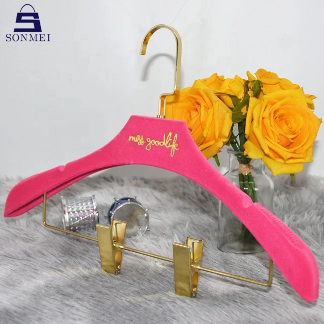 KABEEN Factory price non slip rose gold hook flocking pink velvet coat hanger with logo wholesale