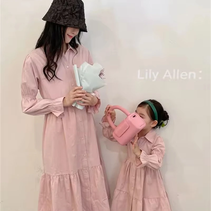 Модная одежда на заказ для мамы и меня розовое платье с длинным рукавом 100% хлопковое подходящее дочки подходит всей семьи