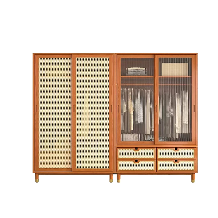 Современная спальня из массива дерева ротанга шкаф многослойная большая мебель для спальни