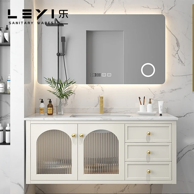 White LED Light Copper Customized Style PartsWall Mounted Mirrored Cabinets Bathroom Vanity