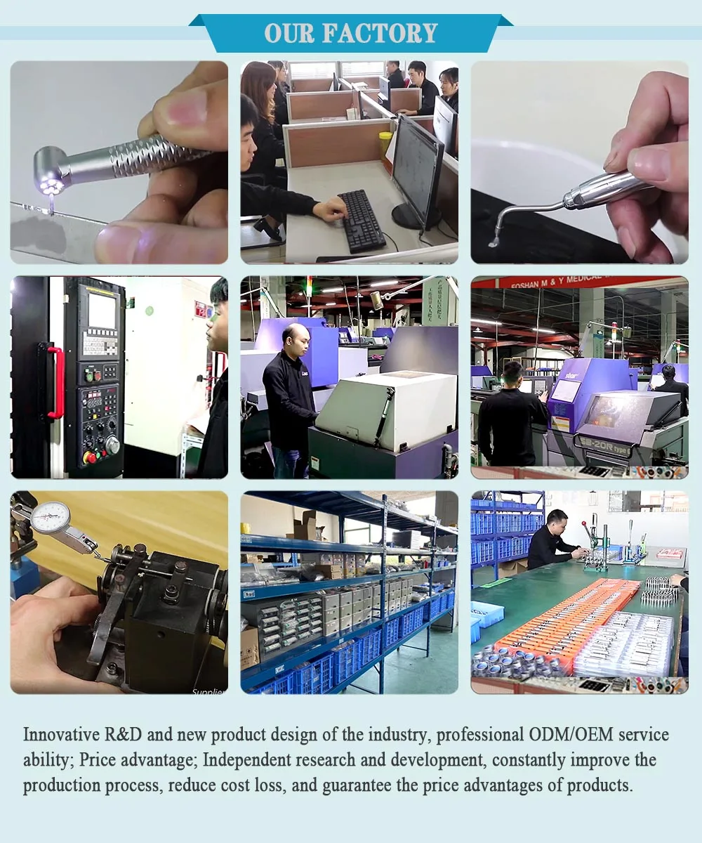 M&Y dental professional factory of air polisher, aluminum oxide sandblaster, air scaler and handpiece. -We have obtained ISO13485 and CE standards certification. -We are one of the professional dental handpiece manufacturer in China. -We are able to customize tools according to your requirements. -We have aprofessional team and more than 80 sets of processing equipment. -12-year-old manufacturer,Factory Direct. -We Provide You High Quality Dental Handpiece with Low MOQ and Competitive Price. -We Manufacture Top Quality Dental Equipment You Can Trust.