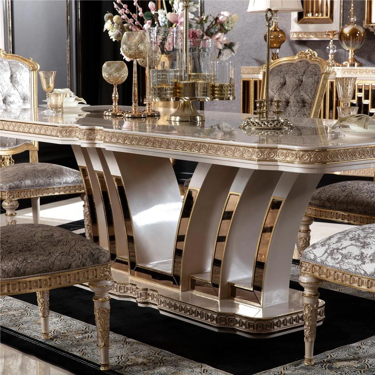 Викторианский новый классический стиль под заказ мраморный верх из нержавеющей стали столовый набор обеденный стол