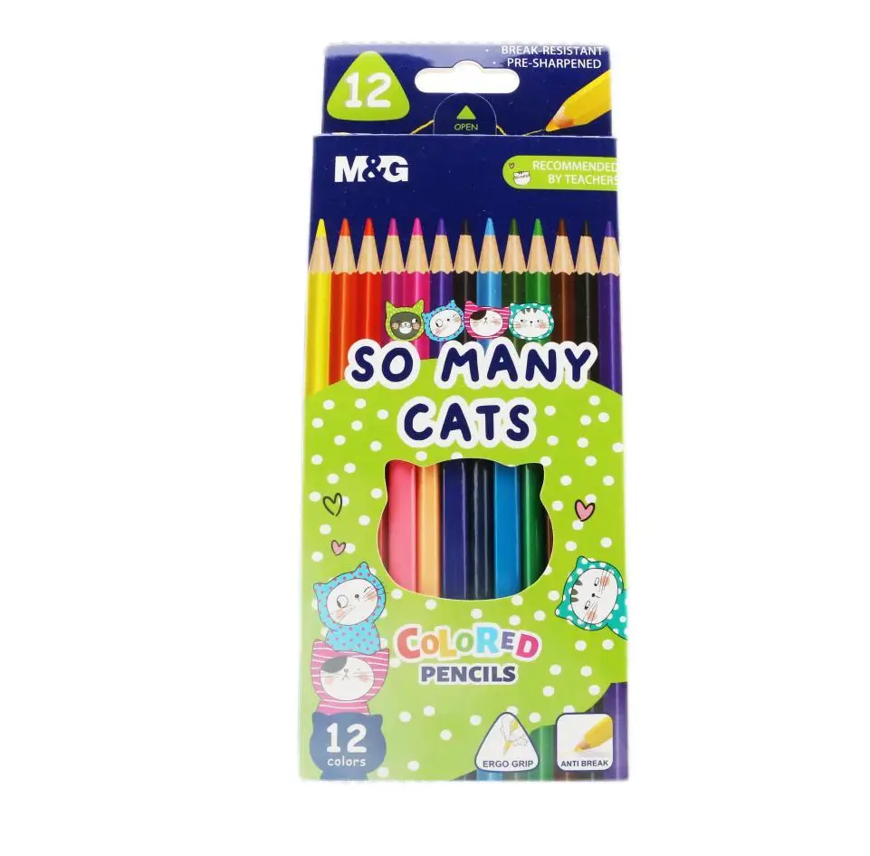 Набор цветных карандашей на масляной основе с милыми кошками удобные треугольные школьные ручки для рисования товары творчества