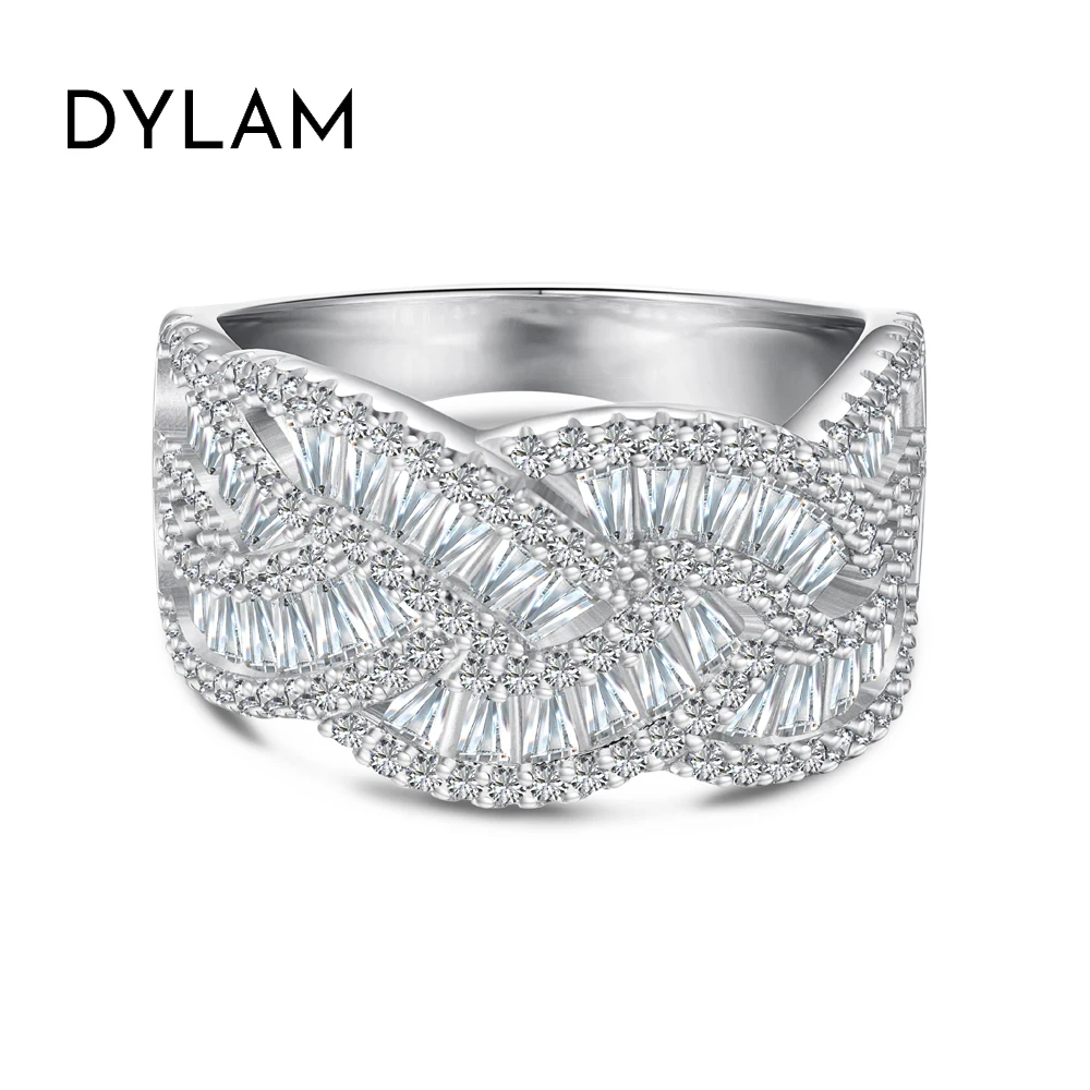 Dylam новый дизайн ювелирные изделия 925 стерлингового серебра с родиевым покрытием геометрический багет коктейль 5A кубический цирконий Вечность Кольца