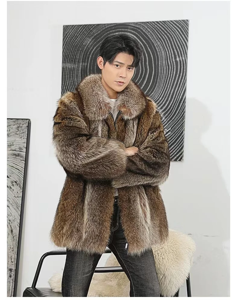Мужская Толстая куртка из натурального меха енота