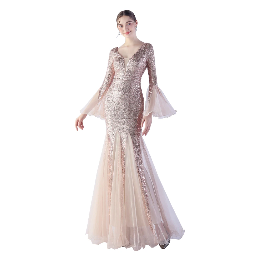 2024 модное однотонное вечернее платье с глубоким V-образным вырезом и длинным рукавом облегающее блестками женская одежда 3 512,81 ₽ - 3 619,61 ₽