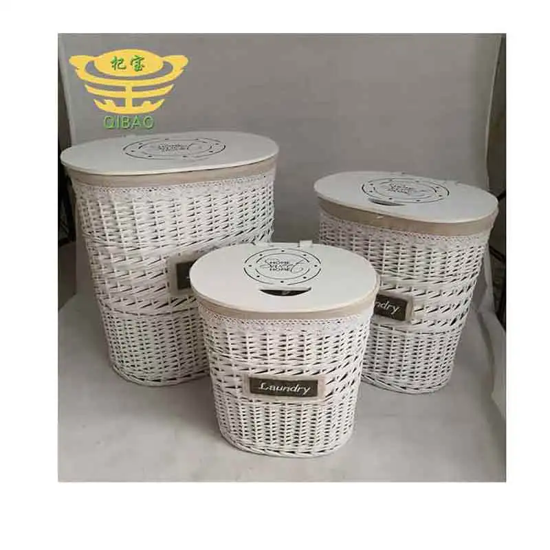 Плетеная корзина для белья в современном скандинавском стиле 3 шт. Штабелируемая хранения с деревянным покрытием