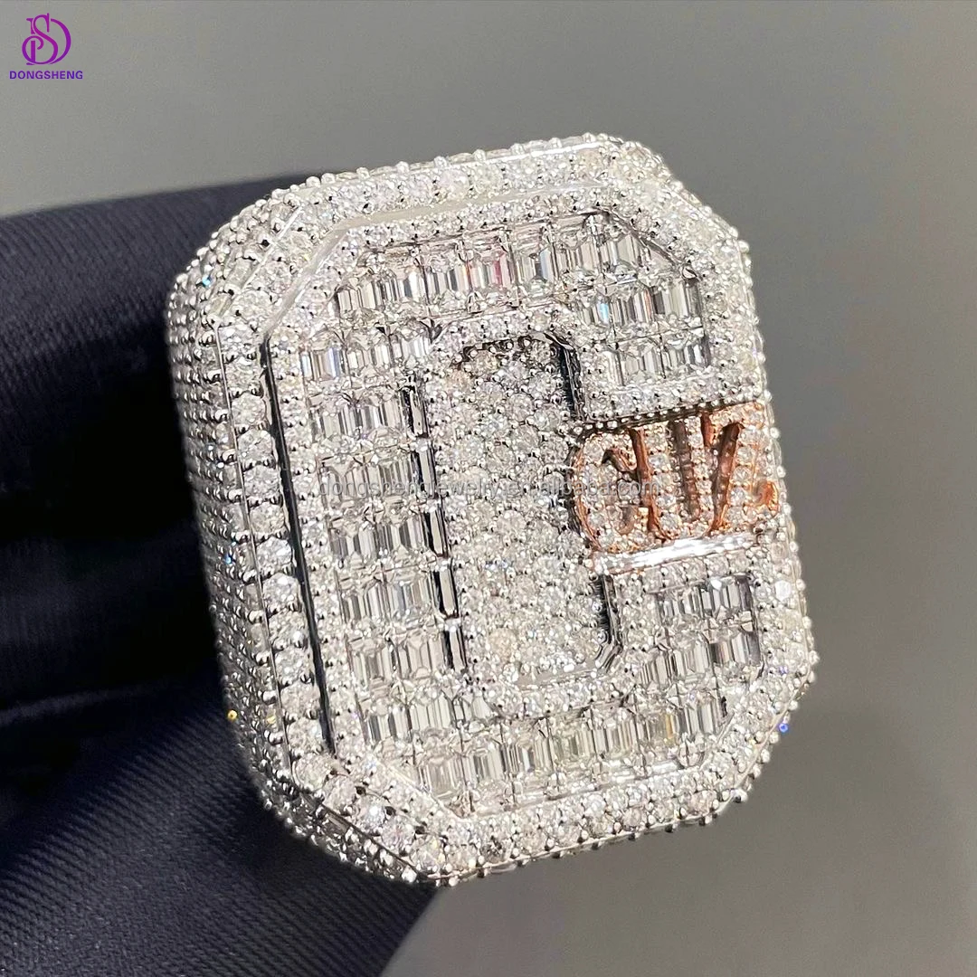 Новое поступление роскошный сертификат GRA обледенение хип-хоп VVS багет Муассанит бриллиант 925 серебро круглое кольцо для мужчин
