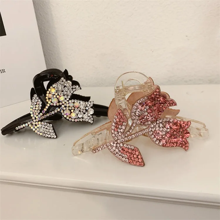 Элегантный Тюльпан Цветок горный хрусталь заколка для волос