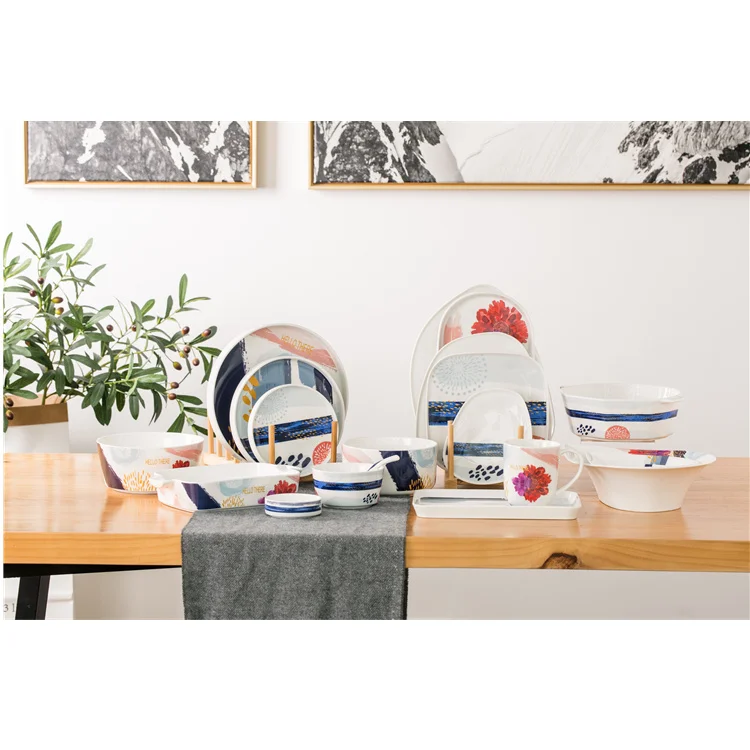 Привлекательный дизайн Высококачественная посуда многоцветный фарфоровый обеденный набор для дома ресторана