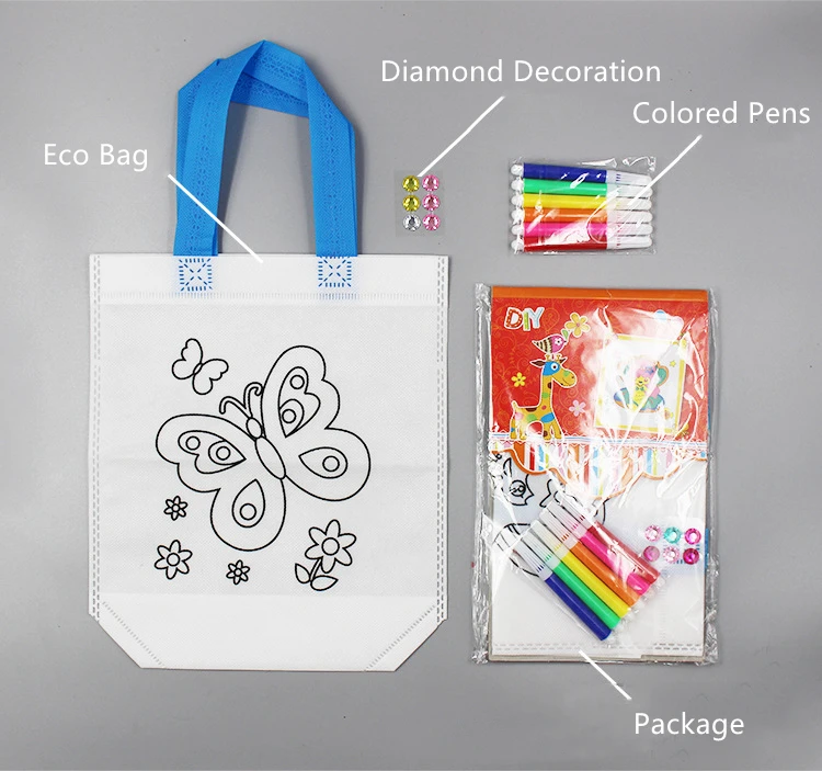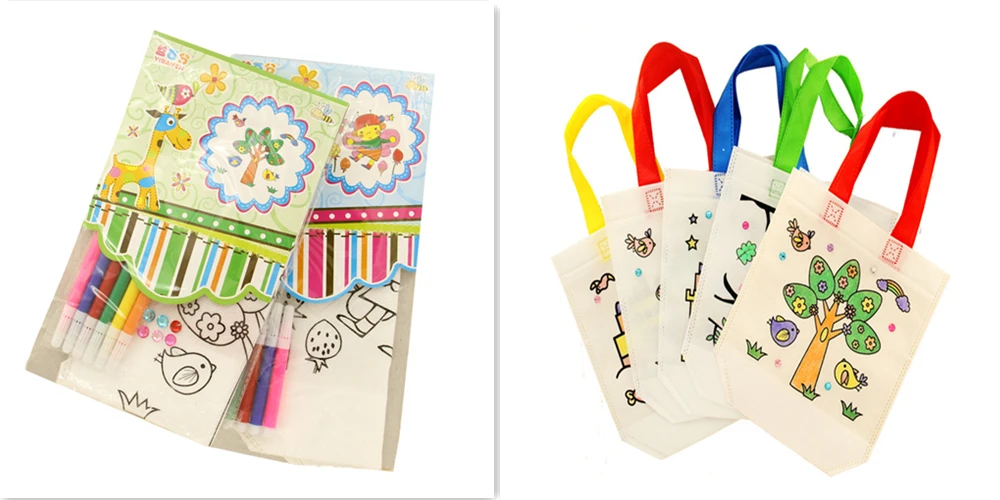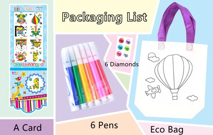 Usage | The DIY Coloring Bags is a good classroom project for kindergarten kids, coloring own tote bag, also good party favor bags for kids birthday, baby shower, Halloween, Christmas ect. |