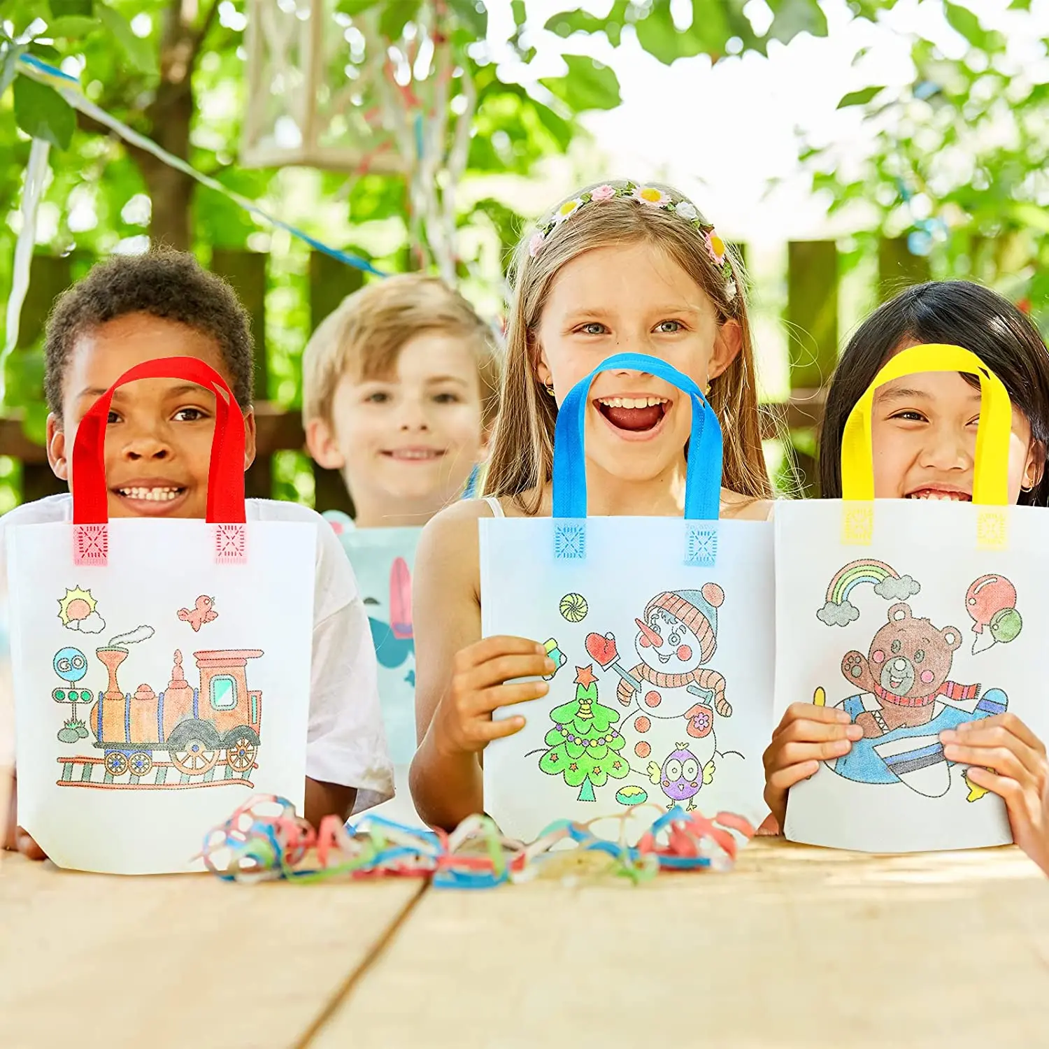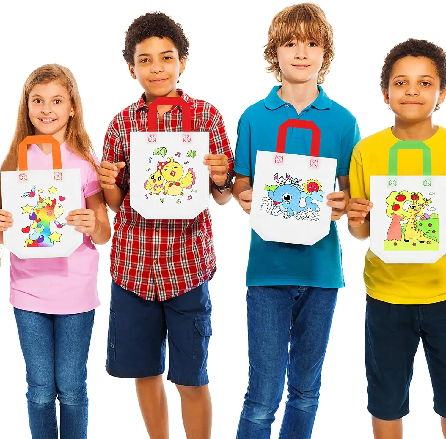 Item | Reusable Party Goodie Bags Coloring Party Favor Tote Bags Reusable Coloring Paint Non Woven Bags for Kids Cartoon Birthday Party DIY Crafts Supplies |