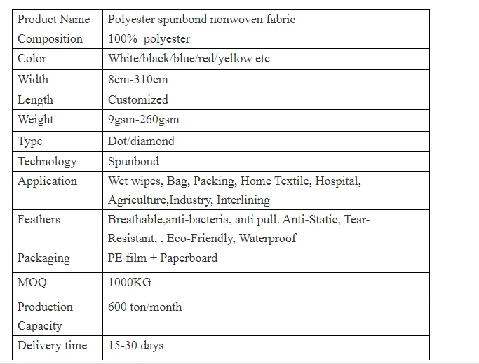 Product name | Polyester spun-bonded non-woven fabric |