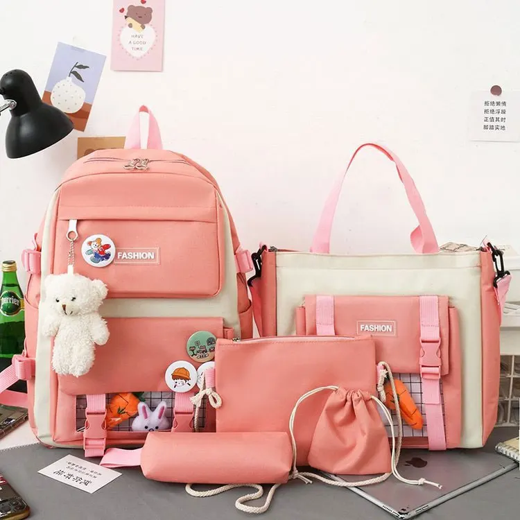 2023 недорогая корейская модная сумка 5 в 1 Детская Высококачественная парусиновая сумка для девочек первый роскошный комплект школьных сумок