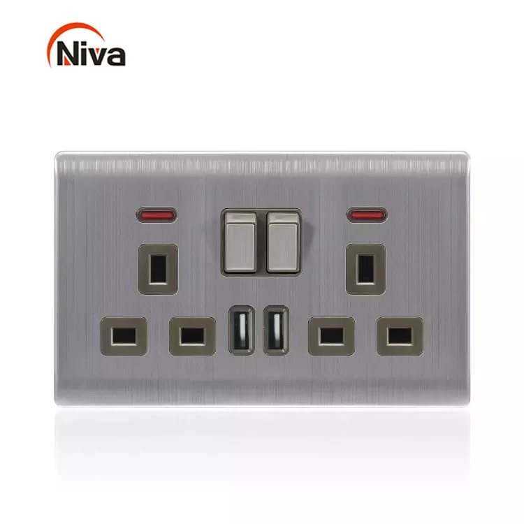 Нержавеющая поверхность, британские розетки, 2 Gang, Великобритания, 13a, плоский 3-контактный Электрический светильник, настенный выключатель, розетка с двойным Usb