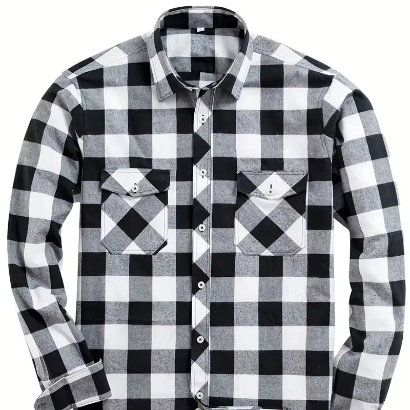 Мужская фланелевая рубашка в клетку, 100%